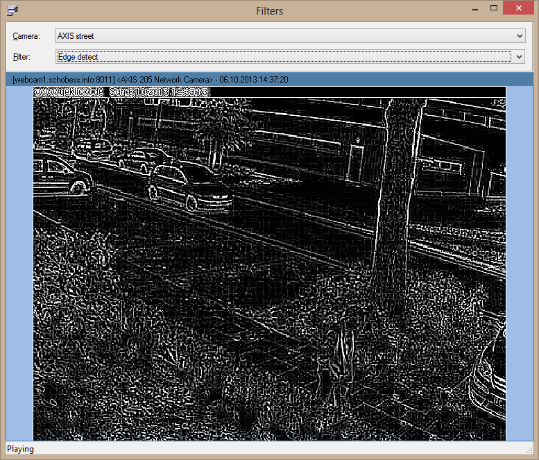 En la demostración se aplican a los fotogramas de vídeo algunos filtros de imágenes (nitidez, detección de bordes, relieve, desenfoque).