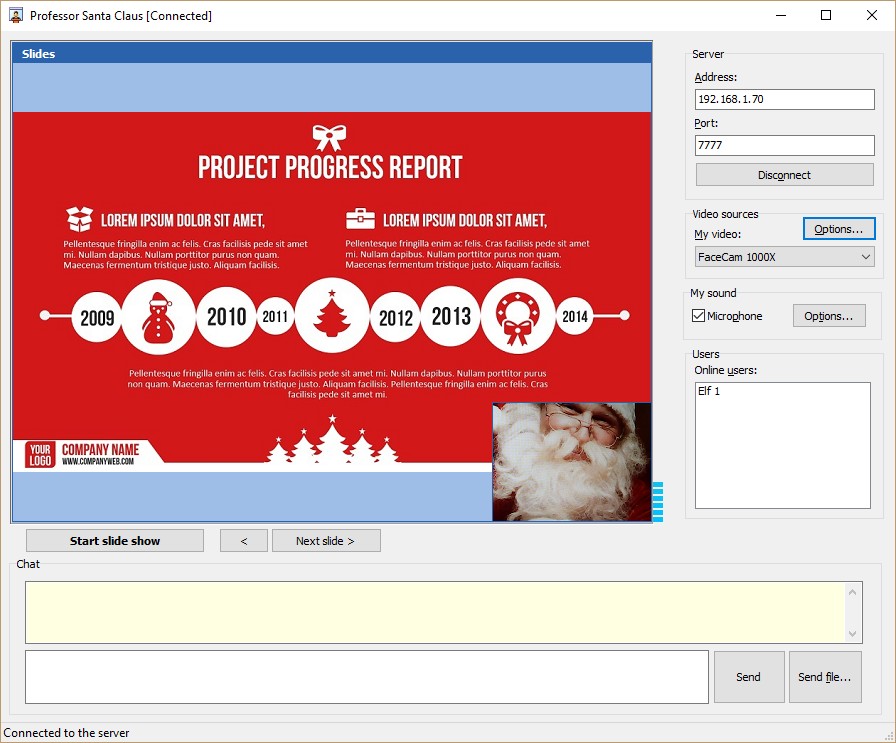 - fuente de vídeo personalizada (las diapositivas se toman de archivos y se envían como vídeo)