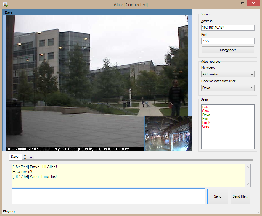 Los Messengers se conectan al servidor multimedia (vea más arriba) y envían el uno al otro datos de vídeo, audio, texto y archivos.