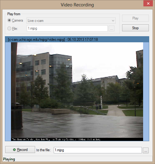 Esta demostración muestra cómo grabar vídeo MJPEG desde una cámara a un archivo y cómo reproducir este archivo.