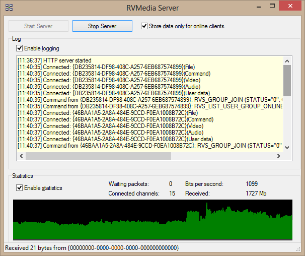 Ubicación de esta demostración en la instalación RVMedia: ClientServer\VideoChats\Server\