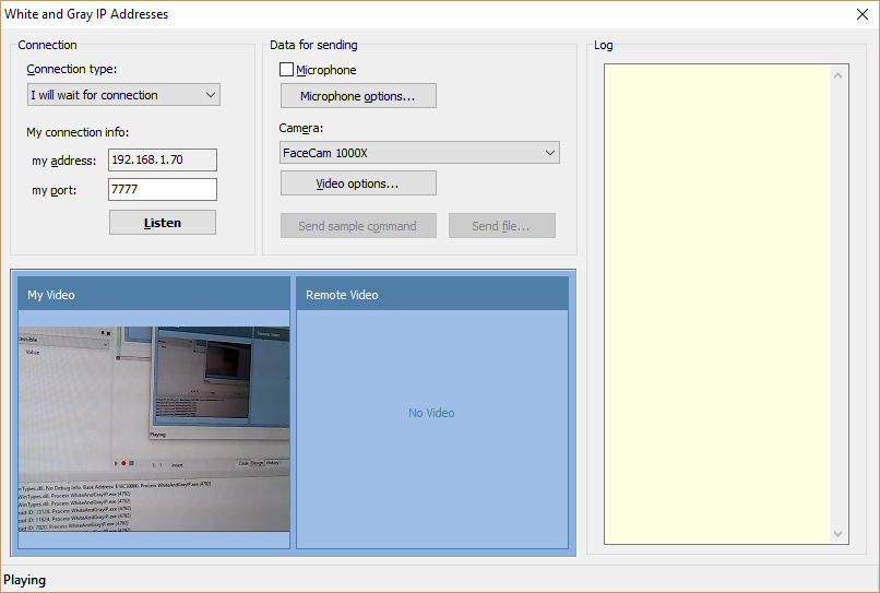 Además de vídeo, esta demo envía a sí misma datos de audio desde el micrófono. También puede enviar un archivo, un mensaje o un comando de prueba.
