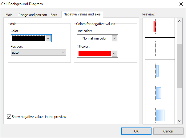 Los diagramas se muestran sobre el fondo de la celda, pero por debajo del contenido de la celda. Si se asigna una imagen de fondo móvil normal, el diagrama se dibuja encima de la misma.