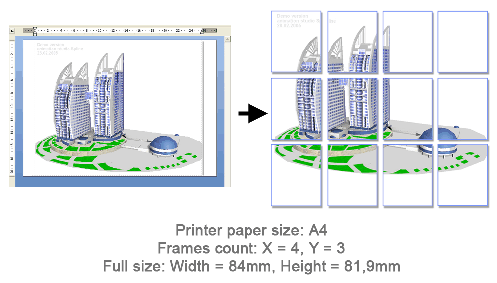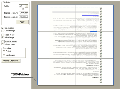Por ejemplo, si deseamos imprimir un documento A2 pero nuestra impresora sólo soporta tamaños de papel hasta A4. TSRVPrint permite: