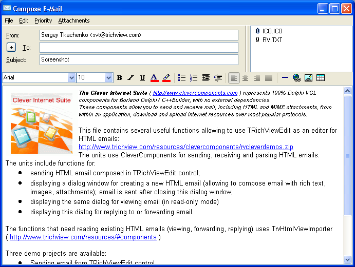 - enviar mensajes creados en el control TRichViewEdit;