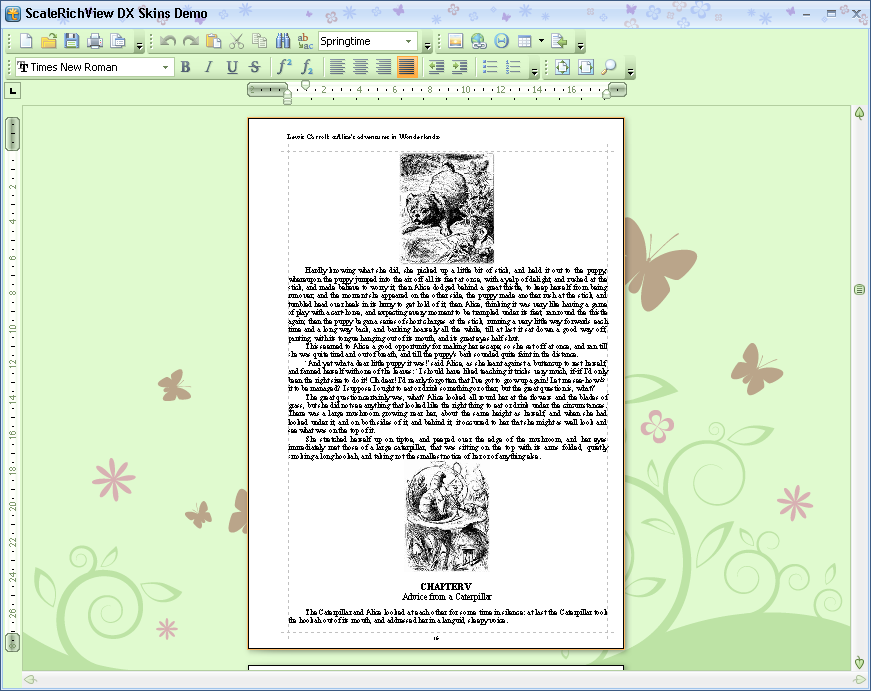 El paquete incluye el componente TSRVDxSkinAdapter que permite utilizar ExpressSkins en el editor ScaleRichView.