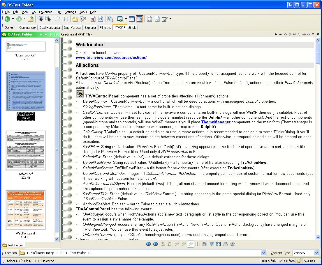 Permite ver los archivos RVF — archivos en el formato del editor de TRichView.