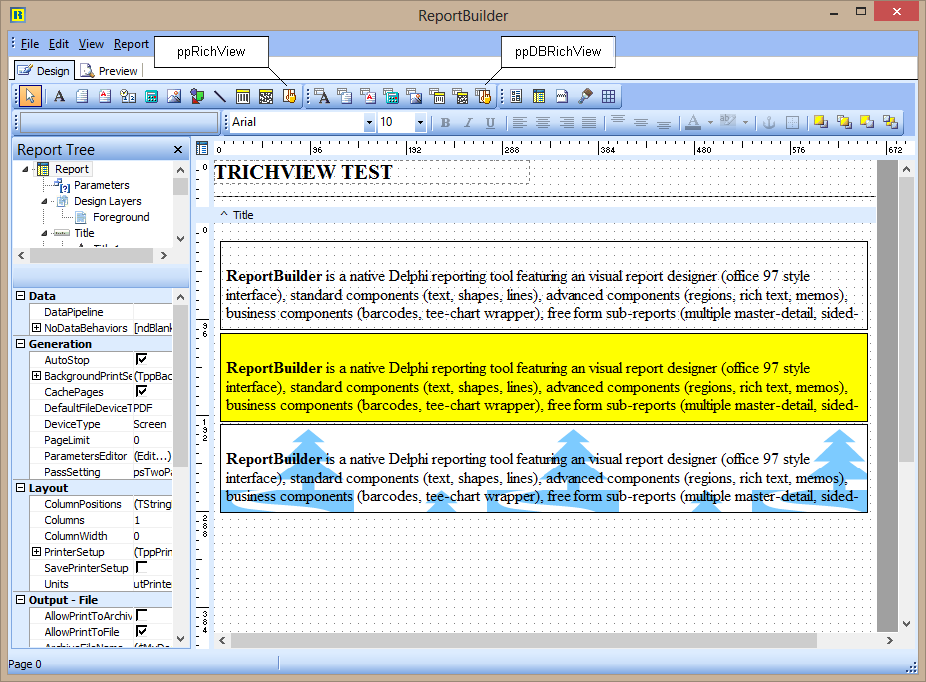 Visita la Página Envoltura de RichView para ReportBuilder para información adicional.